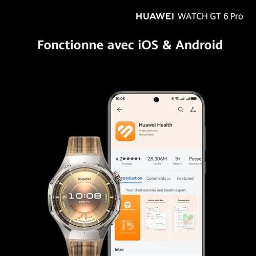 La Huawei Watch GT 6 Pro 46 mm est une montre connectée premium alliant design élégant, matériaux haut de gamme et technologies avancées pour la santé, le sport et la vie quotidienne. Elle offre une autonomie exceptionnelle, une précision de suivi et une expérience fluide intuitive